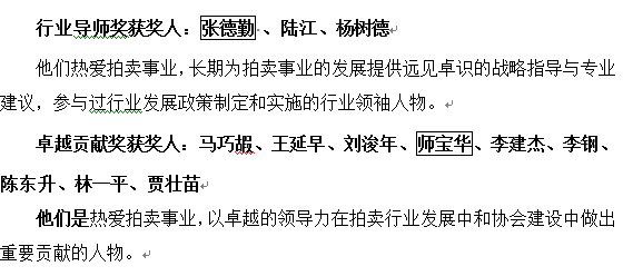表彰張延華等13位行業(yè)突出貢獻(xiàn)者 12日晚20時(shí),中拍協(xié)第五次會(huì)員代表大會(huì)頒獎(jiǎng)典禮活動(dòng)隆重舉辦。 中國拍賣行業(yè)發(fā)展已走過三十年,在這段三十年的風(fēng)雨歷程中,飽含了無數(shù)拍賣人的嘔心瀝血和無私奉獻(xiàn)。有很多人需要感謝和銘記。為此,中拍協(xié)五屆一次理事會(huì)決議頒發(fā):終身成就獎(jiǎng)、行業(yè)導(dǎo)師獎(jiǎng)、卓越貢獻(xiàn)獎(jiǎng)。銘記他們的拍賣故事,激勵(lì)一代代拍賣人。