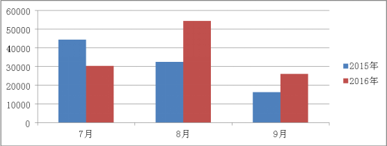 據(jù)全國拍賣行業(yè)管理信息系統(tǒng)顯示,截止9月底,全區(qū)共有拍賣企業(yè)144家,其中分公司4家。從業(yè)人員710人,拍賣師157人。2016年第三季度,拍賣成交276場,同比增長5% ,流拍171場,同步下降25%,實現(xiàn)成交額110808.62,同比增長18.49%,傭金收入1017.30,同比下降21%。上繳稅收1.73萬元,同比增長11%。利潤383.93,同比增長92%。 一、2016年三季度經(jīng)營情況 根據(jù)經(jīng)驗統(tǒng)計數(shù)據(jù)情況分析顯示:2016年第三季度與2015年同期相比除7月份下降30%,其余8月、9月分別上漲80%、67%。 2016年第三季度成交額情況表 | 單位:萬元 | | 7月 | 8月 | 9月 | 2015年 | 44524.71 | 32612.06 | 16382.61 | 2016年 | 30312.24 | 54431.76 | 26064.62 |
