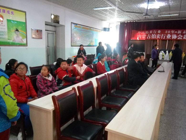 清水河逸夫小學(xué)活動現(xiàn)場 早在梁啟超《少年中國說》中就有一句話“少年強(qiáng),則國強(qiáng)”。可愛的孩子們是我們的未來,也非常契合本次拍賣周的主題“30年,新未來”。我們拍賣行業(yè)正值青春年少,新的未來新的希望!明天正等待我們拍賣人去創(chuàng)造更多的輝煌。正如這些花一樣的孩子們! 現(xiàn)場學(xué)生代表 本次慈善義捐活動由內(nèi)蒙古拍賣協(xié)會主辦,內(nèi)蒙古拍賣協(xié)會秘書處負(fù)責(zé)實(shí)施,內(nèi)蒙古拍賣行業(yè)協(xié)會會長李繼生、內(nèi)蒙古拍賣行業(yè)協(xié)會秘書長賈世軍、協(xié)會副會長趙軍、協(xié)會副會長王志江、協(xié)會理事哈斯,協(xié)會會員郭素英、張哲,協(xié)會副會長單位代表李艷林、協(xié)會副會長單位代表包娜及清水河縣教育局的有關(guān)領(lǐng)導(dǎo)和逸夫小學(xué)的校長和書記參加了本次捐贈活動。本次慈善捐助活動共向清水河逸夫小學(xué)捐贈了價值一萬八千五百六十元的物品,用于學(xué)校的日常教學(xué)和孩子們的學(xué)習(xí)。通過這次慈善捐助活動不僅增強(qiáng)了我們拍賣行業(yè)的責(zé)任感,也讓更多的人了解了拍賣行業(yè)。 呼市電視臺、北方新報(bào)、內(nèi)蒙古晨報(bào)、內(nèi)蒙古晚報(bào)、攝影記者主流媒體跟蹤并進(jìn)行了報(bào)道。 內(nèi)拍協(xié)領(lǐng)導(dǎo)及部分企業(yè)負(fù)責(zé)人