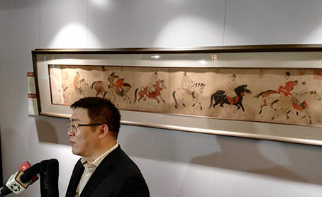 “五王醉歸圖卷”超3億成交 業(yè)界稱創(chuàng)2016中國藝術(shù)品最高價(jià)  保利拍賣執(zhí)行董事趙旭在《五王醉歸圖卷》前接受采訪。中新網(wǎng)記者 宋宇晟 攝 2016年12月4日,任仁發(fā)畫作《五王醉歸圖卷》亮相拍場(chǎng),最終以3.036億元成交。保利拍賣執(zhí)行董事趙旭在接受采訪時(shí)表示,該作品“成交價(jià)創(chuàng)今年中國藝術(shù)品在全球的最高成交紀(jì)錄”。 當(dāng)晚,保利2016秋拍在北京舉行,任仁發(fā)畫作《五王醉歸圖卷》亮相“中國古代書畫夜場(chǎng)”。 據(jù)保利拍賣官網(wǎng)資料顯示,《五王醉歸圖卷》為宋紙本,設(shè)色繪制,縱35.5厘米,橫212.5厘米,清宮舊藏。卷繪唐朝臨淄王李隆基、宋王李憲、申王李撝、岐王李范、薛王李業(yè),花萼樓宴罷醉歸的情景。