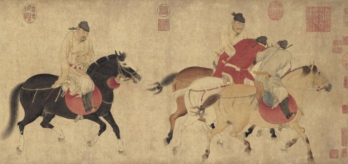 明確的收藏記錄自明代開始。卷中鈐有“乾隆御覽之寶”(弘歷)、“石渠定鑒”(弘歷)、“寶笈重編”(弘歷)、“嘉慶御覽之寶”(颙琰)“干清宮鑒藏寶”(弘歷)、“宣統(tǒng)御覽之寶”(溥儀)等;卷尾鈐有“乾隆鑒賞”(弘歷)、“三希堂精鑒璽”(弘歷)、“宜子孫”(弘歷);后隔水上鈐有“宣統(tǒng)鑒賞”(溥儀)、“無逸齋精鑒璽”(溥儀),顯示乾隆、嘉慶、宣統(tǒng)曾收藏該作品。 該作品以咨詢價(jià)上拍。當(dāng)晚,該作品以6800萬元起拍,價(jià)格迅速升至8000萬元,隨后價(jià)格以100萬元一次交替上升。經(jīng)超過40分鐘、150余輪競(jìng)價(jià),最終以2.64億元人民幣落槌,按照15%的傭金計(jì)算,最終成交價(jià)為3.036億元人民幣。