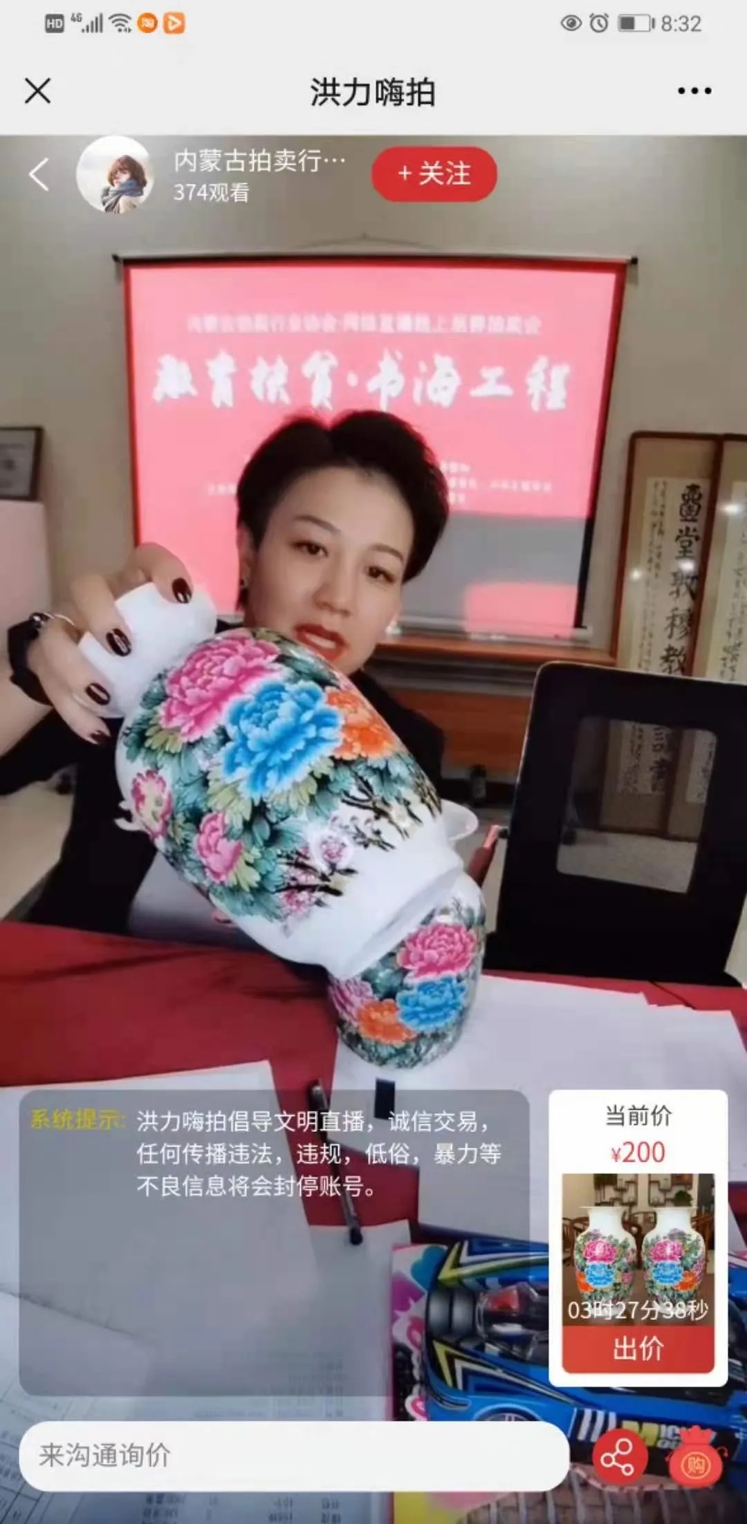 用書籍點亮孩子們的世界,讓夢想自由飛翔 ——記內(nèi)蒙古拍賣行業(yè)協(xié)會年會暨線上直播慈善拍賣會 一年一度的內(nèi)蒙古拍賣行業(yè)協(xié)會慈善拍賣會如約而至。在這樣一個特殊時期,國外疫情失控,國內(nèi)疫情多地零星散發(fā)的情況下,我們依然堅守拍賣陣地,采取了線上直播的形式、通過洪力嗨拍小程序面向全國各地的公眾,向社會傳遞更多的愛心力量。 此次線上慈善拍賣會由內(nèi)蒙古拍賣行業(yè)協(xié)會秘書長、國家注冊拍賣師培訓(xùn)教官、國家注冊拍賣師娜晴女士和國家注冊拍賣師宋冠楠全程主播,所籌善款全部捐贈給中國光華科技基金會--書海工程項目為貧困地區(qū)兒童捐贈圖書。 直播現(xiàn)場非常熱烈,內(nèi)拍協(xié)在第一次嘗試線上慈善拍賣的情況下,直播間人數(shù)達到500多人,大家在線上直播間互動交流,都想為這些需要圖書的孩子們奉獻自己的一份力量。 拍品有價,愛心無價,在此特別鳴謝為本次慈善拍賣捐贈拍品的各位愛心企業(yè)和個人。(公司排名不分先后) 洪力網(wǎng)科技有限公司董事長畢研挺先生 內(nèi)蒙古京平商貿(mào)有限責(zé)任公司 內(nèi)蒙古中宣拍賣有限責(zé)任公司 內(nèi)蒙古及時雨拍賣有限公司 內(nèi)蒙古凱德拍賣有限責(zé)任公司 內(nèi)蒙古嘉保拍賣有限責(zé)任公司 鄂爾多斯市聯(lián)興拍賣有限責(zé)任公司 內(nèi)蒙古三合拍賣有限責(zé)任公司 滿洲里公物拍賣有限責(zé)任公司 滿洲里福匯拍賣有限責(zé)任公司 內(nèi)蒙古嘉恒拍賣有限責(zé)任公司