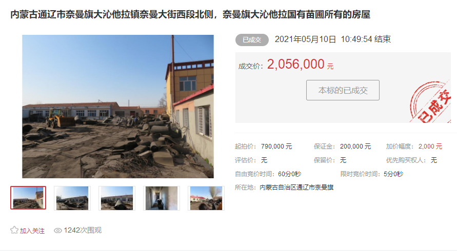 溢價率160%成交,通達拍賣助力國有資產(chǎn)處置提質(zhì)增效 2021年5月10日上午,奈曼旗財政局委托內(nèi)蒙古通達拍賣公司拍賣位于通遼市奈曼旗大沁他拉鎮(zhèn)奈曼大街西段北側(cè),奈曼旗大沁他拉國有苗圃所有的房產(chǎn)及土地增值126.6萬元,通達拍賣公司根據(jù)本次拍品的特點,選用中拍平臺作為線上拍賣平臺,同時進行線下推廣及現(xiàn)場宣傳,房產(chǎn)及土地起拍價為790000元,經(jīng)過3名競拍人53次的競價,最終以2056000元的價格成交,超出起拍價1266000元,溢價率達160%。本次網(wǎng)絡(luò)上拍賣,為公眾營造了良好的競拍環(huán)境,增加了競拍參與的機會,突破了地域的限制,讓競買人足不出戶,動動鼠標(biāo)就可以充分的了解拍品的信息和價格,由于參拍人數(shù)沒有限制,大大增加了競拍機率的同時,切實為本次國有資產(chǎn)處置提質(zhì)增效,有力地彰顯了通達拍賣公司業(yè)務(wù)模式創(chuàng)新的成效。 國有資產(chǎn)處置中,拍賣是最能體現(xiàn)市場化運作的陽光交易手段。拍賣公司作為獨立的社會中介服務(wù)機構(gòu),按照《拍賣法》及相關(guān)法律依法辦事,承擔(dān)法律責(zé)任,以多年來積累的寶貴客戶資源以及網(wǎng)絡(luò)拍賣途徑等多種有效的方式對拍賣標(biāo)的進行社會公開的宣傳招商,以專業(yè)的操作流程,力求達到“信息對稱化、公開化”。國有資產(chǎn)(集體資產(chǎn)、抵貸資產(chǎn))處置走拍賣這條“陽光大道”,能避免內(nèi)幕操作、暗箱操作,通過嚴(yán)格審查競買人競買資格,制定相應(yīng)的競買人資質(zhì)審查制度,就能使國有資產(chǎn)價值最大化,良好的維護資產(chǎn)所有人的合法權(quán)益。 在國有資產(chǎn)處置的市場化運作中,拍賣是最適合市場化運作的高效可行手段,是我們利用市場配置資源的重要途徑,可有效提高資產(chǎn)的價值。通達拍賣采用傳統(tǒng)拍賣與網(wǎng)絡(luò)拍賣相結(jié)合的“線上+線下”模式,真誠、高效服務(wù)于廣大客戶,此次成功助力國有資產(chǎn)處置大幅增值,同時有效降低了委托方的資產(chǎn)處置成本,節(jié)省了大量的人力、物力、財力,最大限度的保障了所有者的權(quán)益。  內(nèi)蒙古通達拍賣有限責(zé)任公司 2021年5月10日 ? |