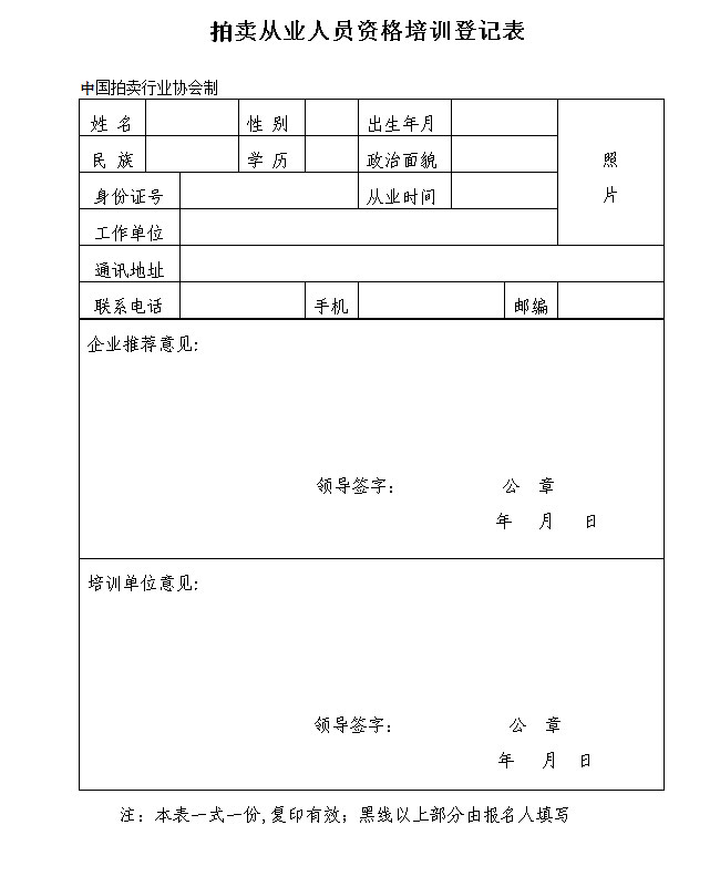 附件下載:拍賣從業(yè)人員資格培訓登記表