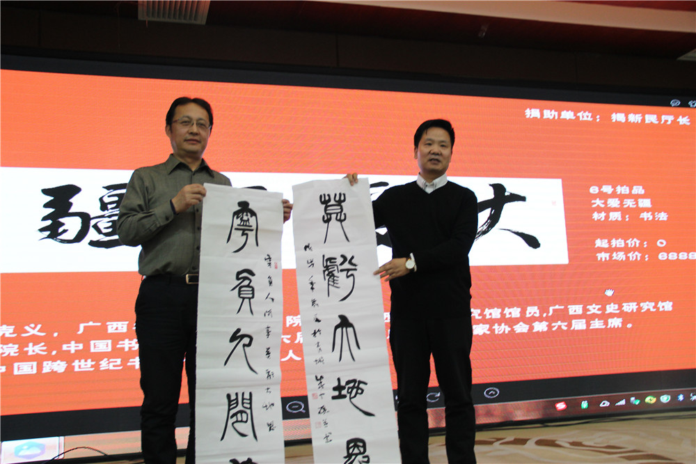 內(nèi)蒙古拍賣行業(yè)協(xié)會(huì)王志江會(huì)長(zhǎng)與與拍賣師于闖及 捐贈(zèng)愛心人士  內(nèi)蒙古拍賣行業(yè)協(xié)會(huì)娜晴秘書長(zhǎng)與拍賣師于闖