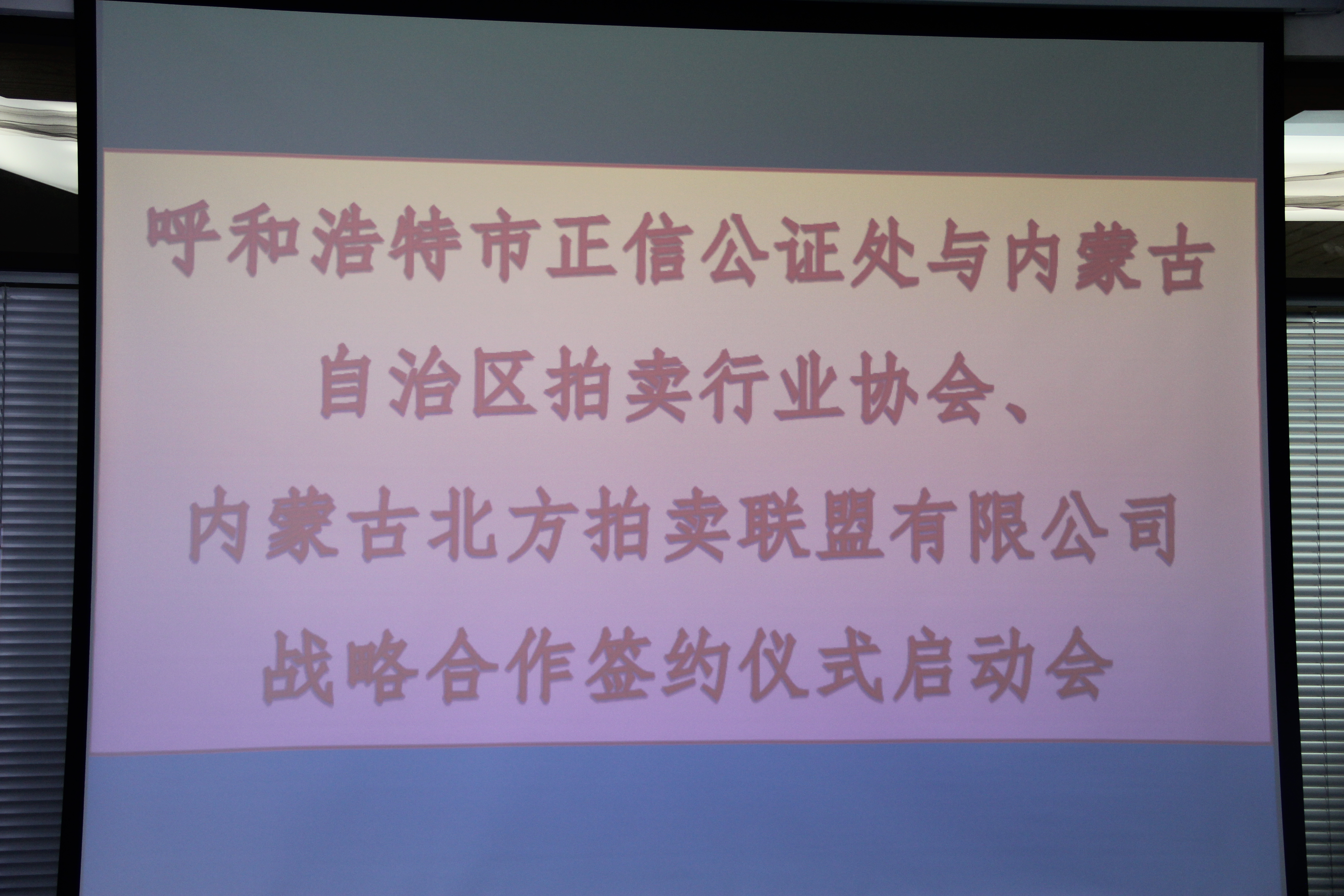 熱烈祝賀內(nèi)蒙古拍賣行業(yè)協(xié)會與內(nèi)蒙古呼和浩特市正信公證處簽署戰(zhàn)略合作協(xié)議 2019年1月21日在內(nèi)蒙古呼和浩特市,內(nèi)蒙古拍賣行業(yè)協(xié)會與呼和浩特市正信公證處簽署戰(zhàn)略合作協(xié)議。雙方本著資源共享、優(yōu)勢互補、平等互利的原則達成一致協(xié)議;內(nèi)蒙古拍賣行業(yè)協(xié)會會員企業(yè)需要公證咨詢業(yè)務時,可以得到呼和浩特市正信公證處更多優(yōu)質(zhì)、便捷的服務。 在此合作基礎上實現(xiàn)資源互補、服務共享、共同發(fā)展的目的。